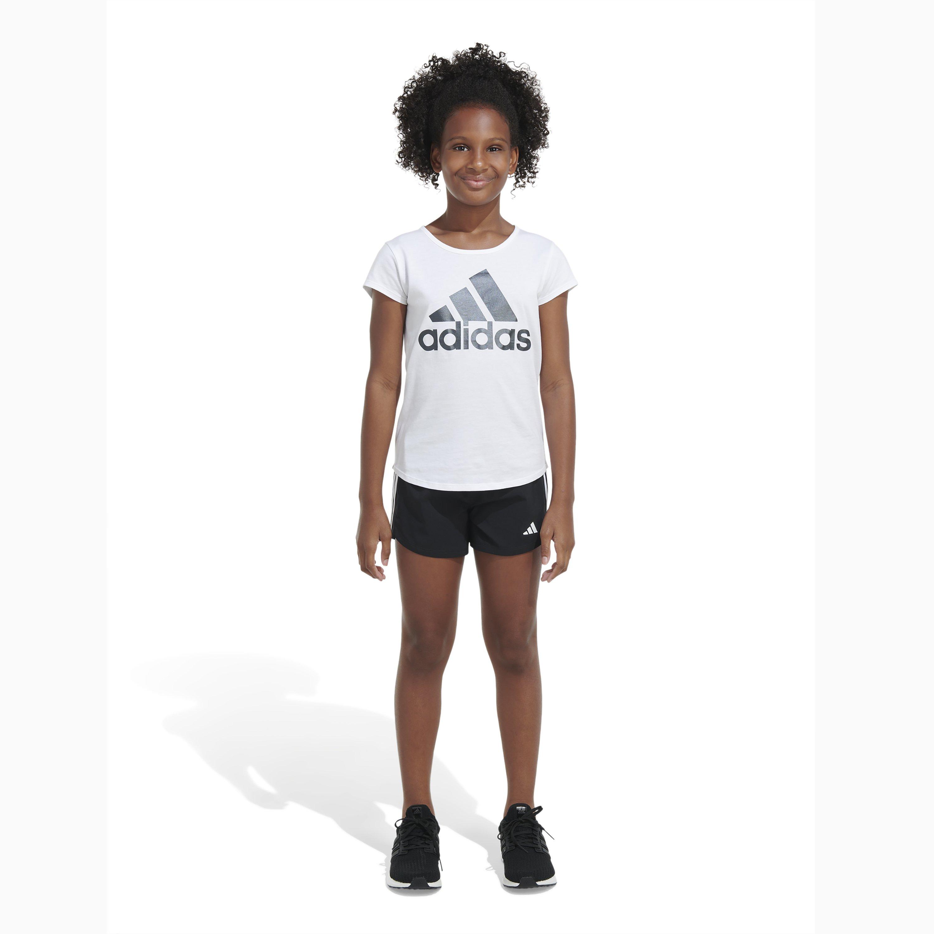Versatile and performance-based, the adidas Girls 3-Stripes Pacer Woven Shorts is lightweight with moisture-wicking technology for a comfortable fit and feel on the playground, at practice, school and more.