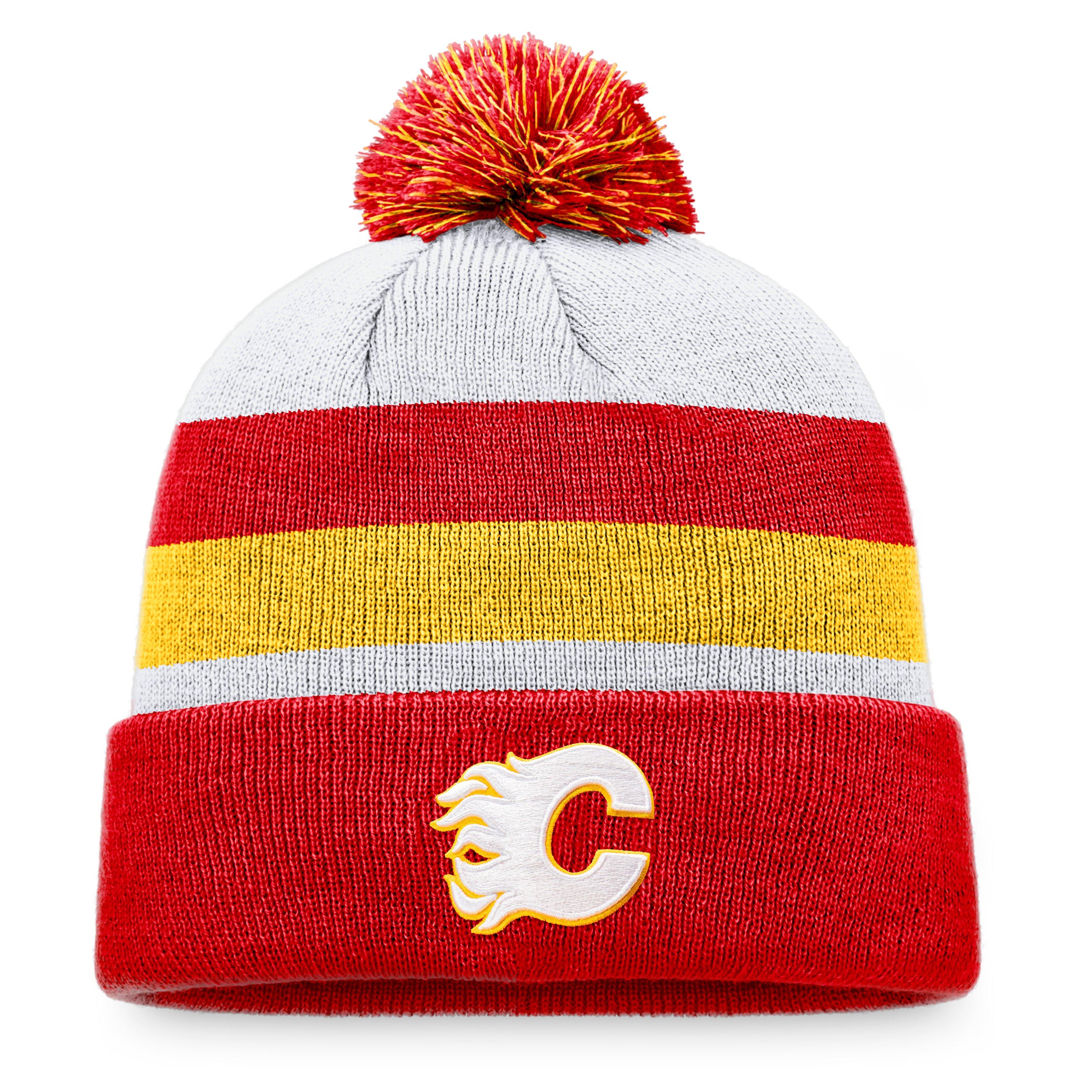 Embrace Flames fandom with the Fanatics Men's Calgary Flames Logo Pom Cuff Beanie. Its cozy ribbed texture and fun pom top deliver authentic fan-friendly style.