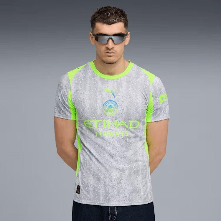 Show your support for Manchester City with the Puma Men's Manchester City F.C. Third Replica Jersey. This jersey combines style and performance, making it ideal for fans who want to make a statement. Crafted with eco-friendly materials, it ensures comfort and sustainability while you cheer on your team.