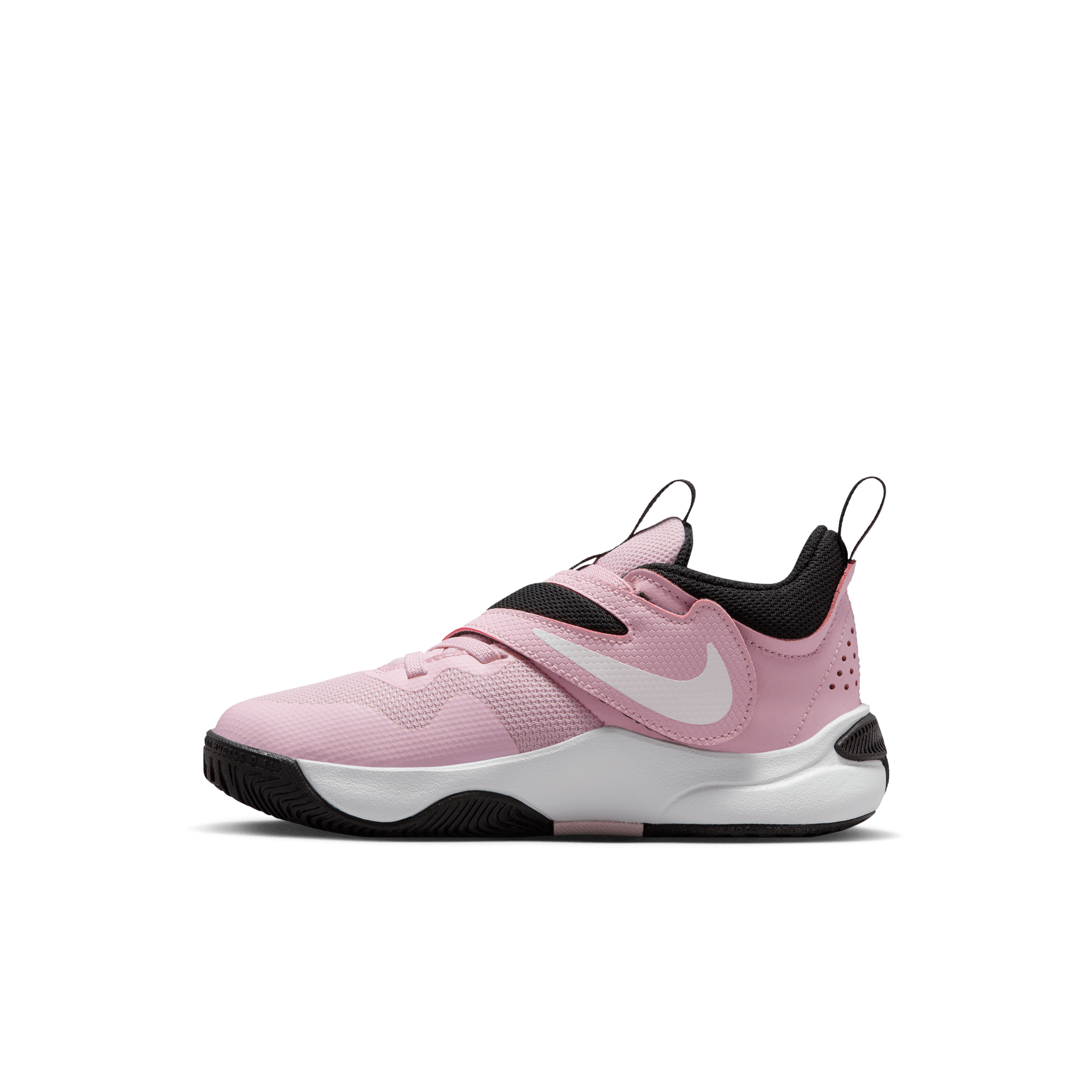 Crafted for the dynamic and adaptable young athlete, the Nike Kids' Team Hustle D 11 Shoes are an excellent choice for basketball practice, gym class, or outdoor play. This 11th edition of the Team Hustle D series emphasizes easy slip-on convenience with elastic laces and a wide opening. A large strap secures the fit for little feet, while plush cushioning enhances comfort compared to previous editions. Constructed from real and synthetic leather, these shoes offer durability and support, complemented by a soft textile for lightweight flexibility. The full-length rubber sole ensures durable traction on both indoor courts and playgrounds. Foam padding on the collar and tongue provides ankle support, and an additional skin layer around the toe area enhances durability for those who tend to drag their toes.
