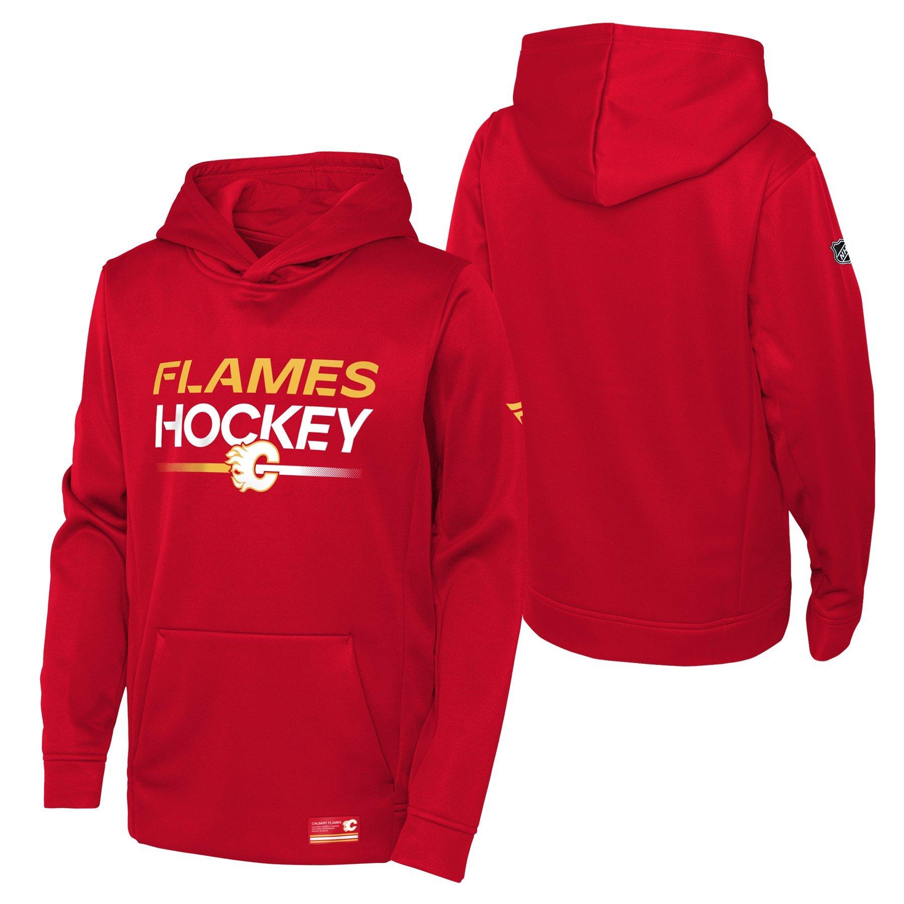 Keep them warm and comfy in this NHL Calgary Flames Youth Authentic Pro Hoodie. A cozy way to support their favourite team, this soft and stylish hoodie also features front pockets for easy on-the-go storage.