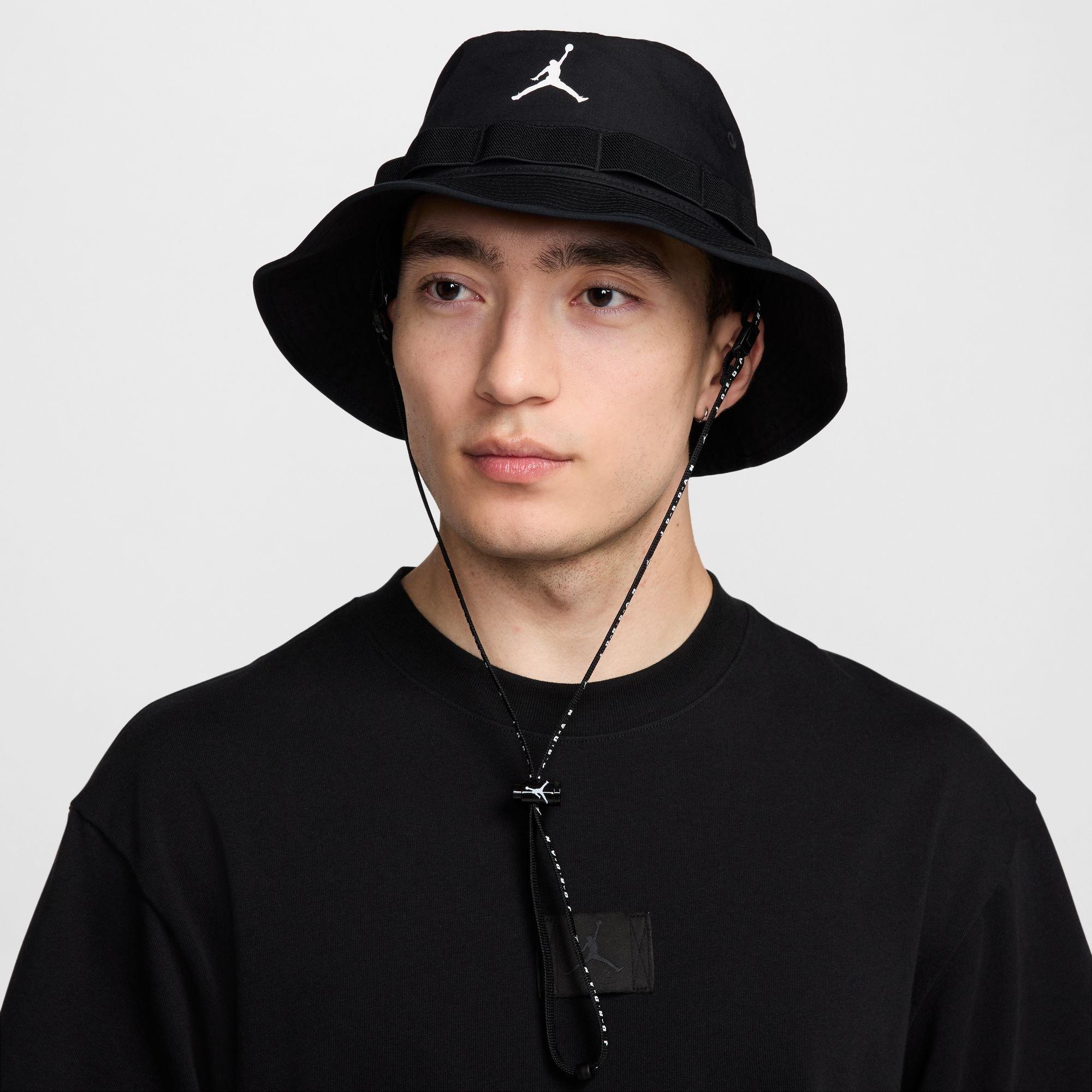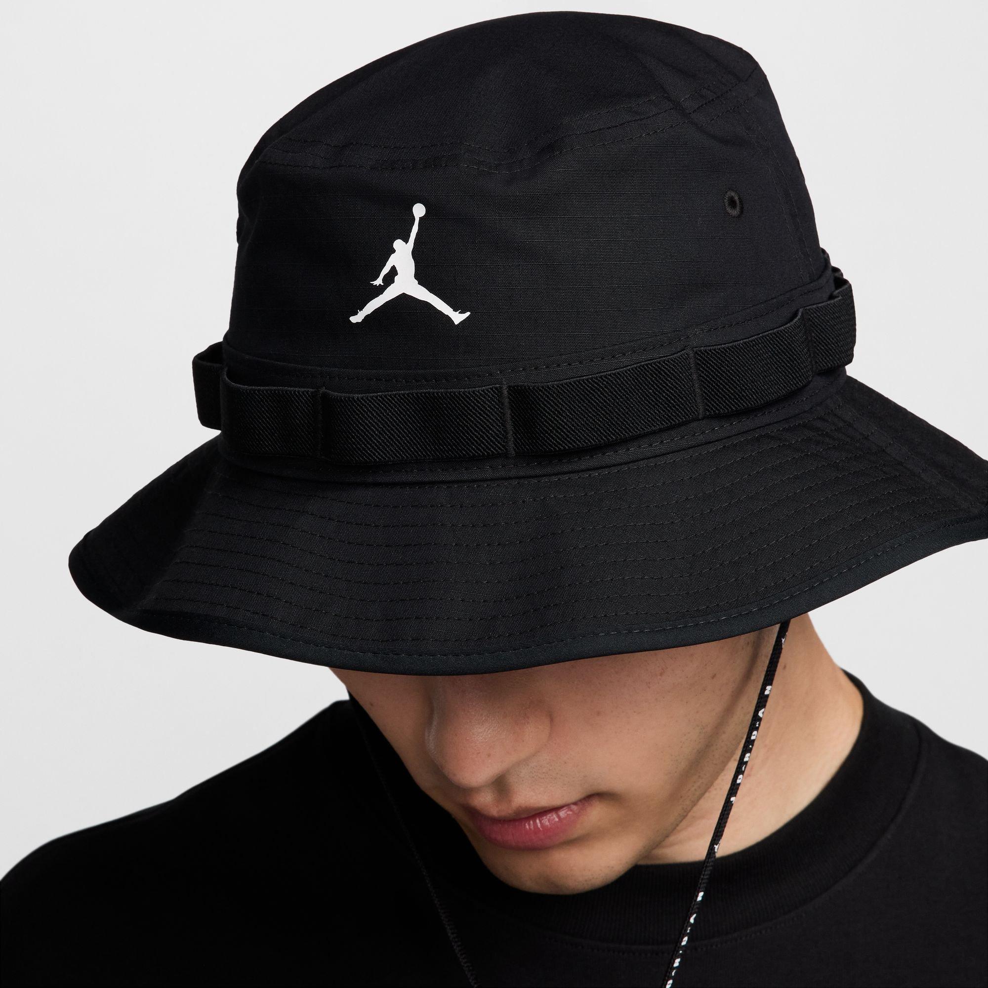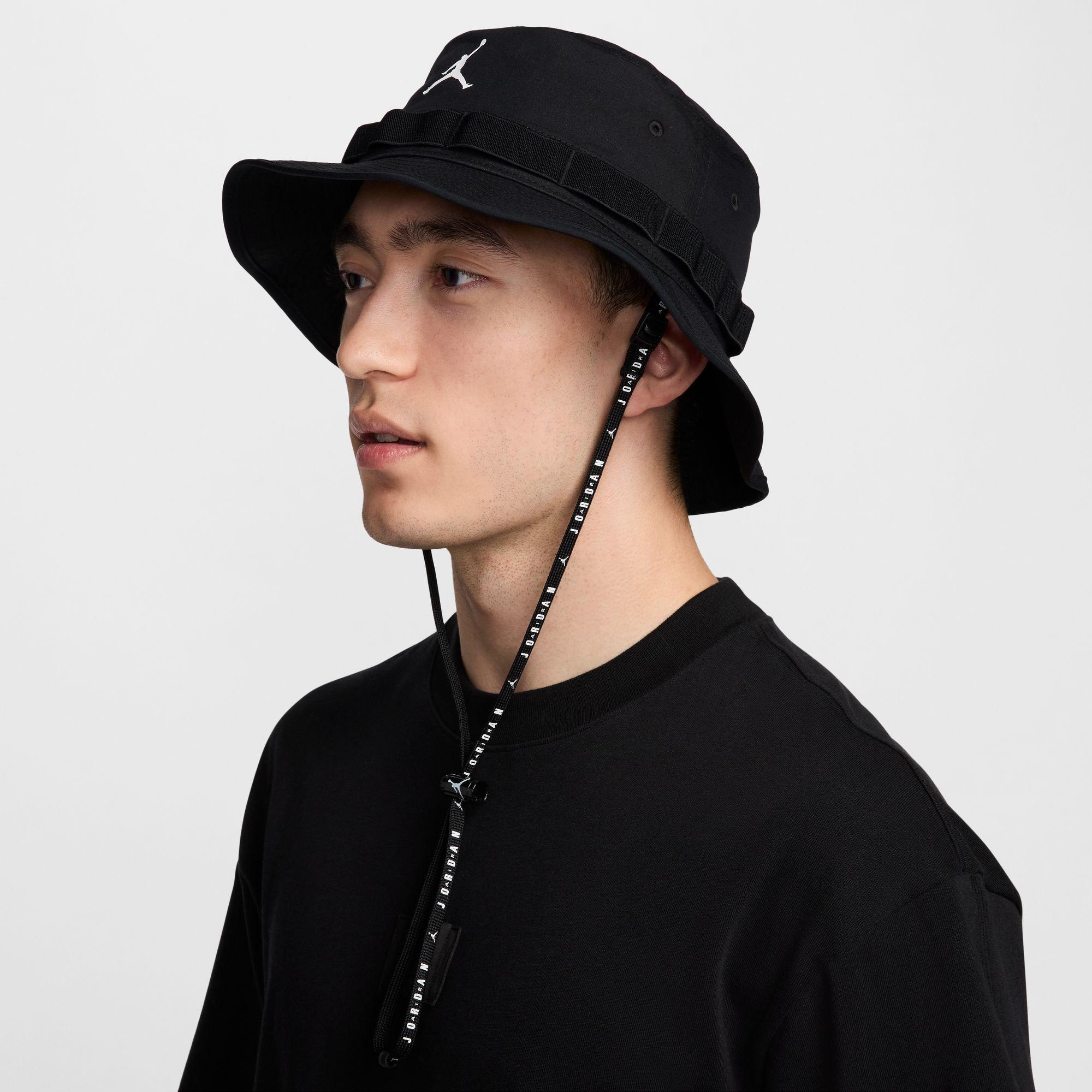 The Jordan Men's Apex Jumpan Bucket Hat is crafted from durable ripstop fabric, offering a stylish and functional accessory for any occasion. This mid-depth bucket hat provides 360 degrees of coverage, ensuring you stay protected from the elements. It features a removable strap with an adjustable toggle for a secure fit, while the flexible brim enhances its protective capabilities. Additionally, embroidered eyelets add a touch of breathability, making it a comfortable choice for all-day wear.