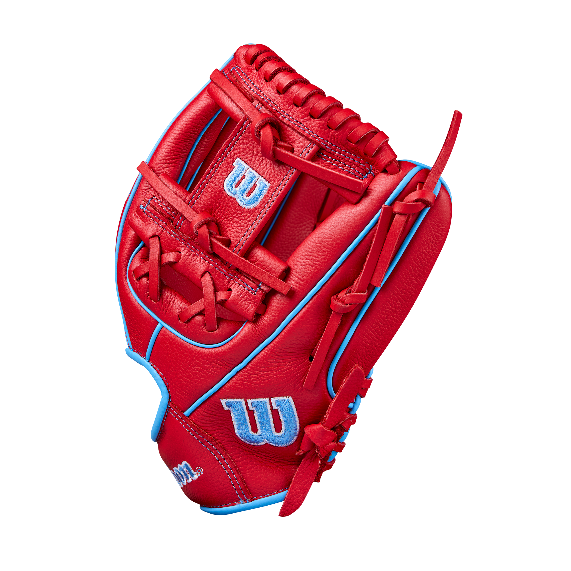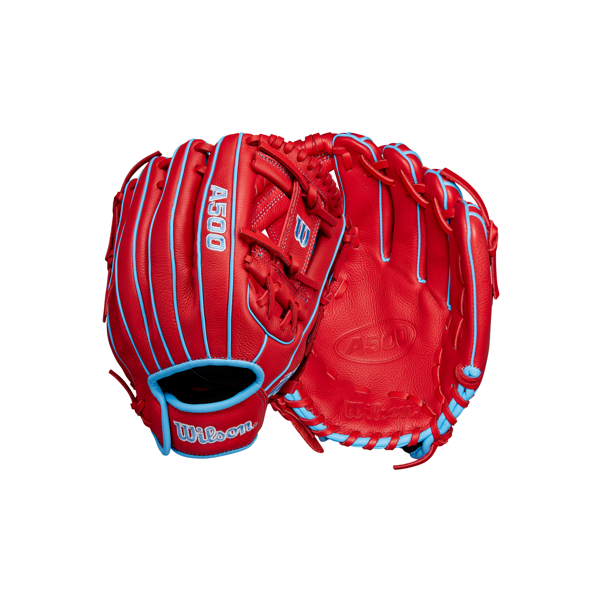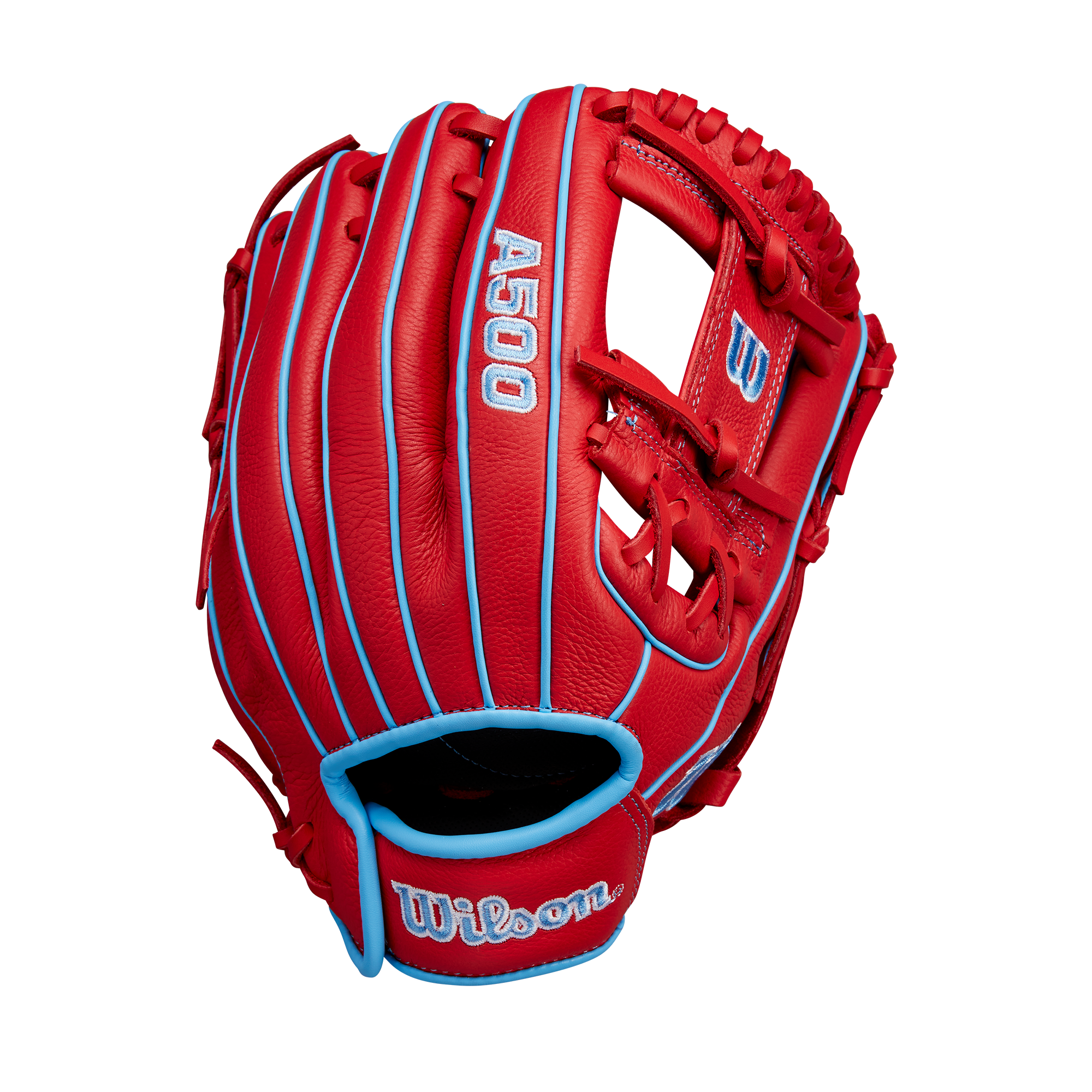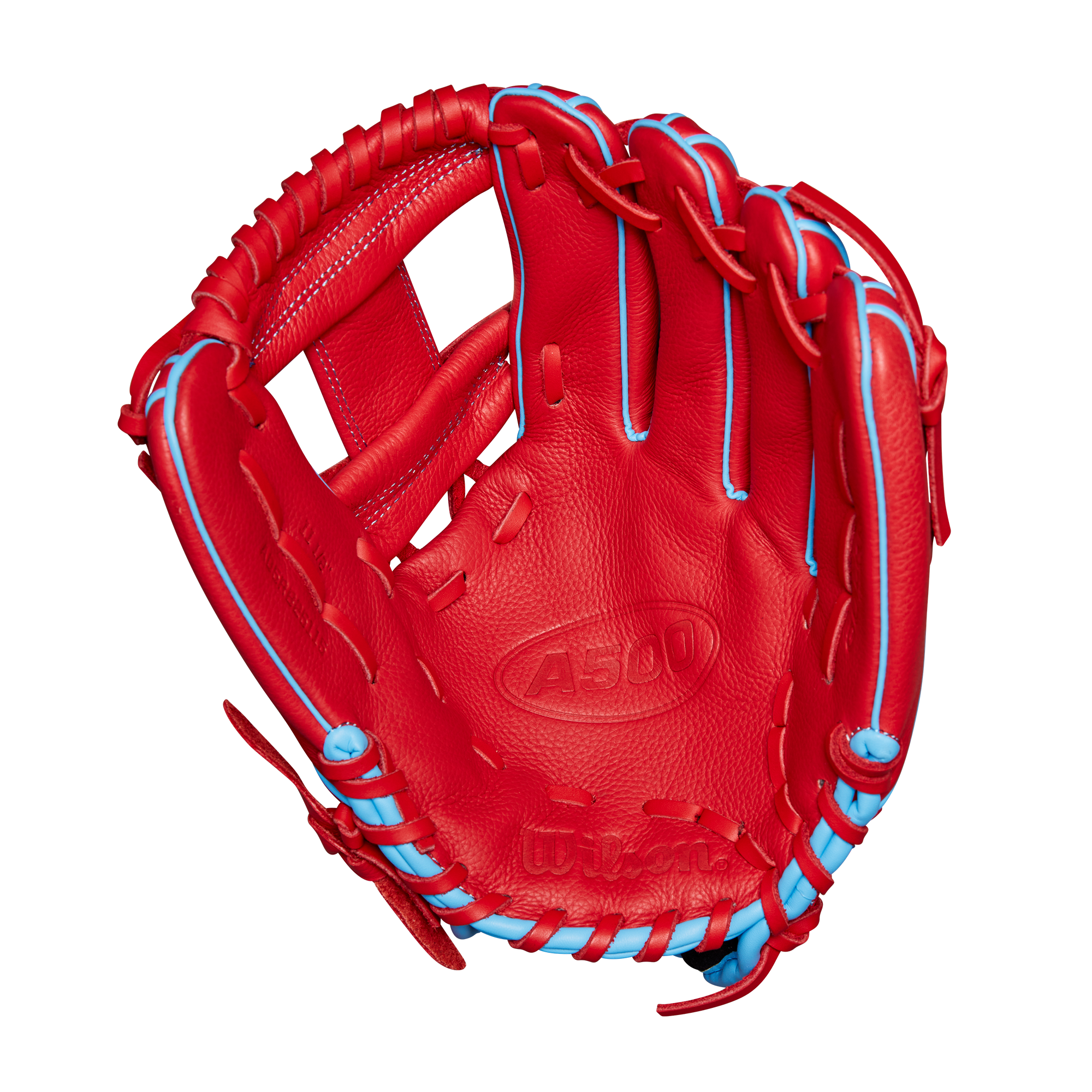 The Wilson A500 11.5" H-Web Baseball Glove is crafted with full leather construction, making it soft and ready for play immediately, which is beneficial for young players learning defensive skills. The Red & Cool Blue Top Grain leather provides a lightweight feel, allowing players aged 6 and older to easily control the glove. The self-adjusting Quick Fit Wrist strap offers a snug fit, enhancing comfort by hugging the back of the hand. Designed with Wilson's classic H-Web, this glove is perfect for catching ground balls and pop-ups anywhere on the field.