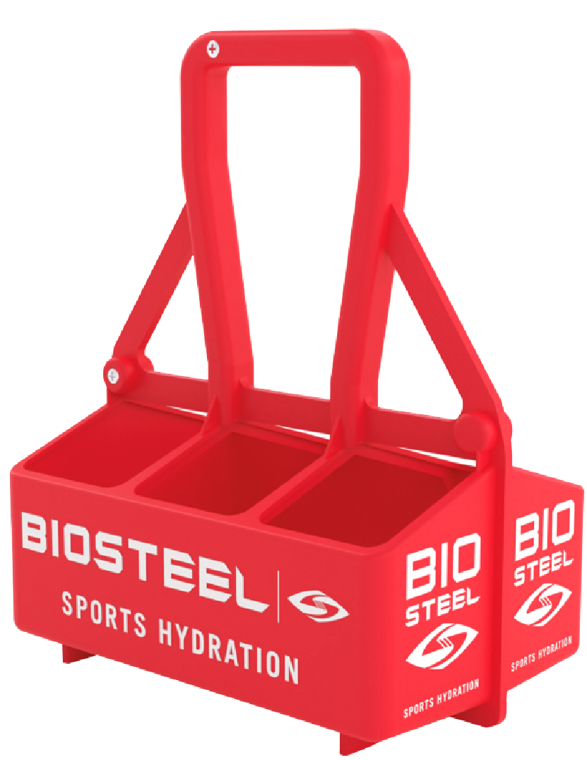 - BioSteel Water Bottle Carrier holds up to 6 BioSteel Team Water Bottles for convenient carrying