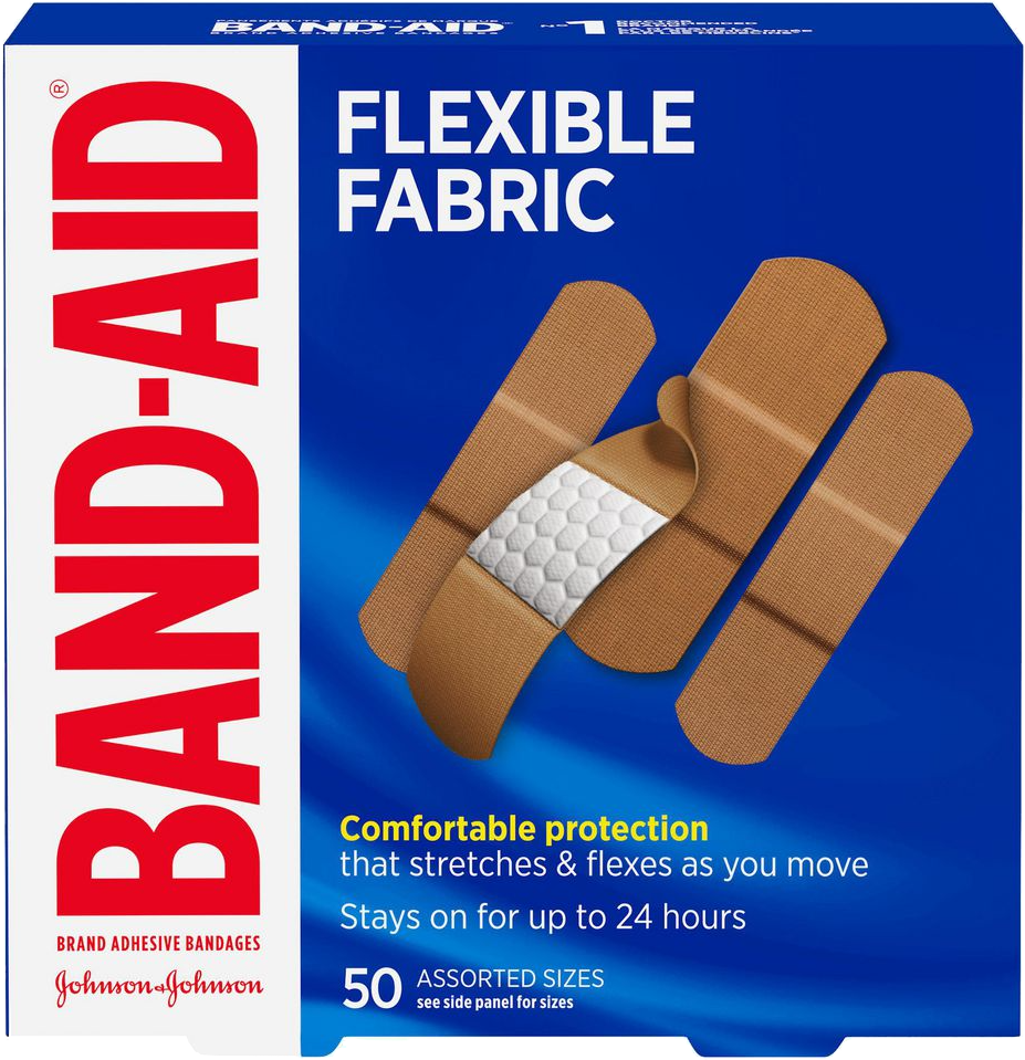 Protect your cuts and scrapes in comfort with these Band-Aid 50-count Flexible Fabric Adhesive Bandages in assorted sizes. These bandages are designed to move with you, keeping you clean and covered wherever you go.